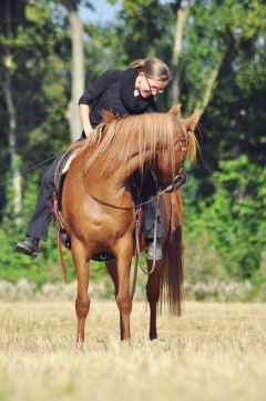 Wenn die Kommunikation am Boden schon gut klappt, können die erlernten Prinzipien und Signale auch vom Pferderücken aus gegeben werden, zunächst das (Knoten-) Halfter verwendend, das Mensch und Pferd vom Boden aus schon kennen. So kann eine reitweisenunabhängige Basis geschaffen werden.